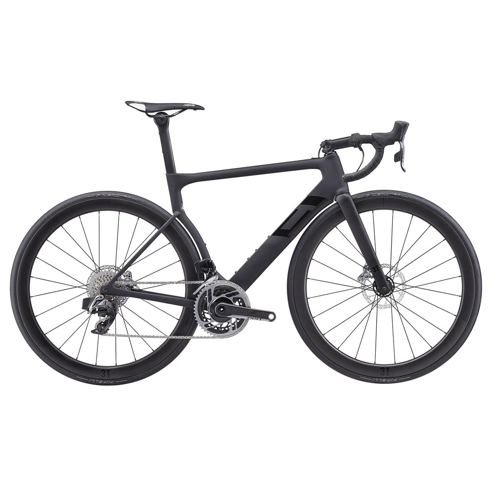 Rolling on a set of carbon 3T Discus rims featuring a 45mm depth, you're getting the aerodynamic performance that's light enough for long climbs too. 3T's expertise in componentry manufacture is put to good use with the included stem Stealth and handlebar combination matching the bike perfectly.