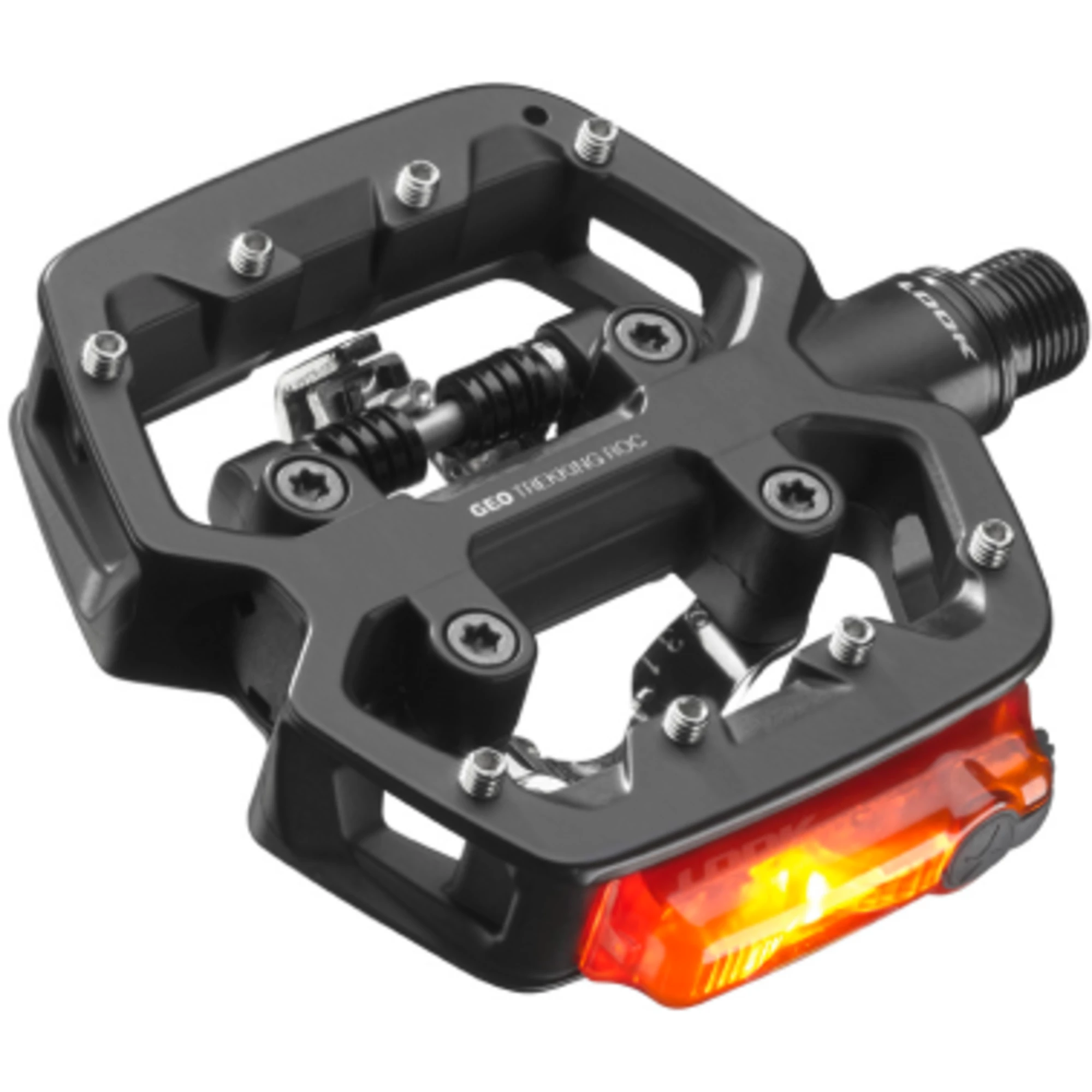 Look's Geo Trekking Vision Roc Pedals bring together the versatility of a hybrid pedal with the additional safety of a clip-on light. The aluminium body and Chromoly+ spindle make for a robust construction that can cope with the worst conditions. One side the pedal is flat for use with normal shoes and trainers, while the other is compatible with SPD pedal systems using the included X-Track Easy cleats. Retention is adjustable and, in combination with the easy release cleats, means that clipping in and out can be dialled in. The light itself clips on to the pedal, has three modes including steady and flashing, and a long battery life. The watertight construction means it won't let you down in poor conditions.