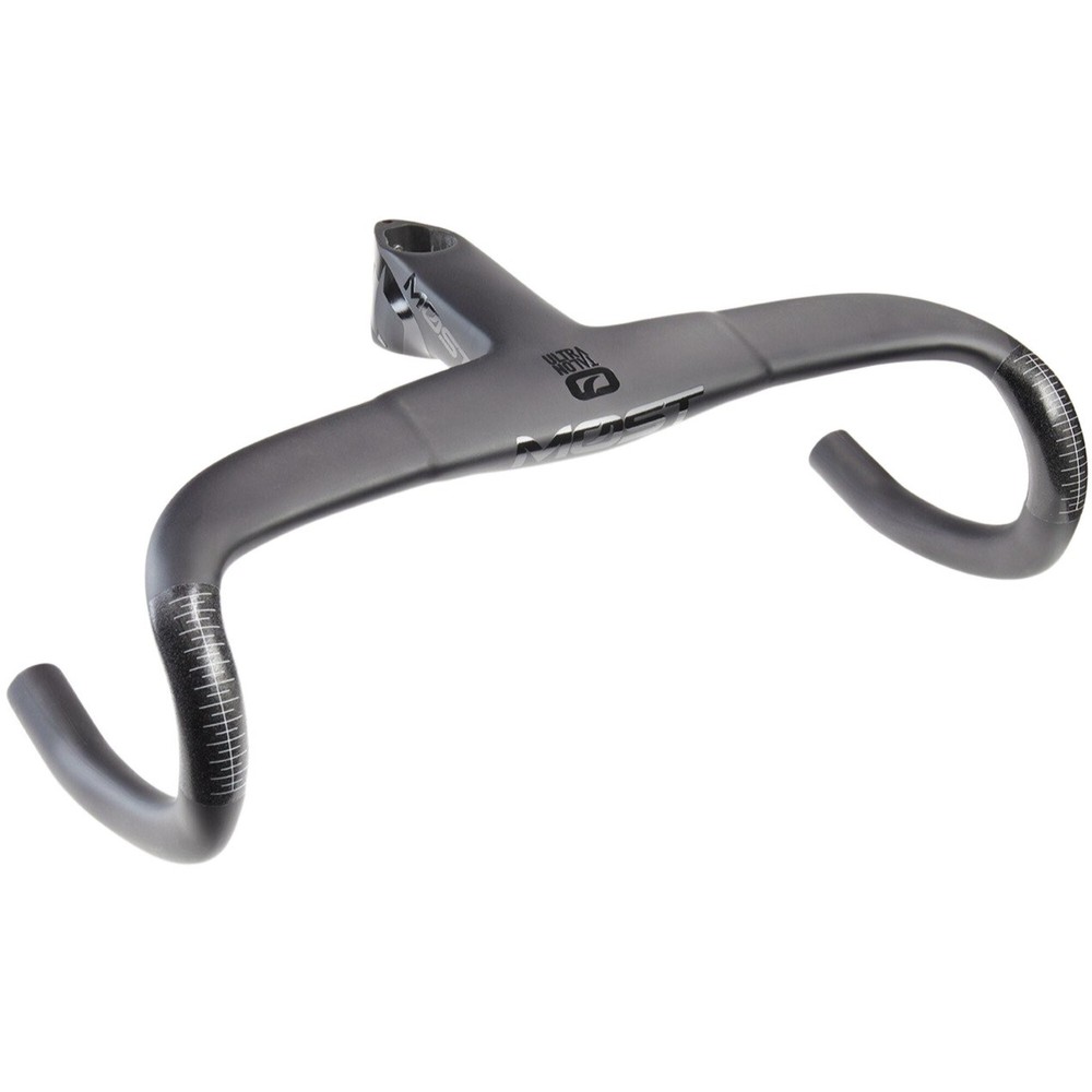 MOST’s Talon Ultra Light Integrated Handlebar combines the stem and handlebar into one seamless unit for lower weight and increased stiffness. Weighing 13% less than its predecessor thanks to an improved carbon laminate, this handlebar is the perfect way to finish off a Dogma F, F-series or any other fast road bike. The profiled design is not only aerodynamic but comfortable too, with a drop of 125mm and a reach of 80mm that enables a low drag position to be maintained in comfort.