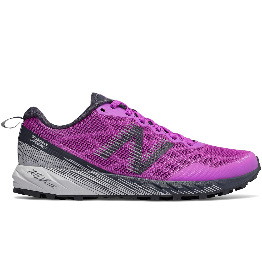 The New Balance Summit Unknown Womens Trail Running Shoes are packed with features for fast running off the beaten track. Perfectly balancing comfort, stability and protection these shoes are refined for performance in all conditions. Toe Protect enhances the durability of the front of the shoe, shielding your vulnerable toes from stubbing on rocks or knocking into loose debris and HydroHesion rubber compound delivers unrivalled grip whether wet or dry. A lightweight REVlite midsole ensures that the shoe is responsive, especially on uneven or unpredictable surfaces, so that you can maintain a fast stride turnover. The upper uses an innovative no-sew construction that reduces the risk of irritation as your foot strikes the ground at different angles and is both lightweight and breathable so that water drains out quickly and your feet stay cool in hot weather.