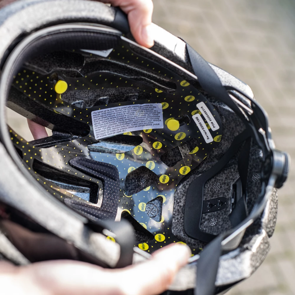 The Oakley Limited Edition Aro5 MIPS Helmet is dialled in for aerodynamic performance, comfort and safety. The polycarbonate shell keeps weight to a minimum and you're well protected in the event of impact by shock-absorbing EPS foam and the innovative MIPS system. Between the shell and lining is a low friction layer that reduces rotational movement. The result? A significantly lower risk of both mild and severe head injuries.