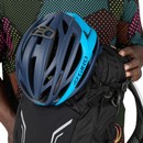 The bike-specific winged shoulder harness increases the pack’s stability on rough trails without reducing freedom of movement whilst the AirSpeed suspension backpanel ensures good ventilation for comfort on warm days. Externally, there is a mesh stretch pocket on the front for stashing a windproof jacket along with two side pockets and Osprey’s fantastically simple LidLock for carrying a helmet. Should the weather take a turn for the worse, the integrated raincover can be deployed to protect the bag and its contents from rain and mud. Side compression straps allow the contents to be secured if the bag isn’t completely full.