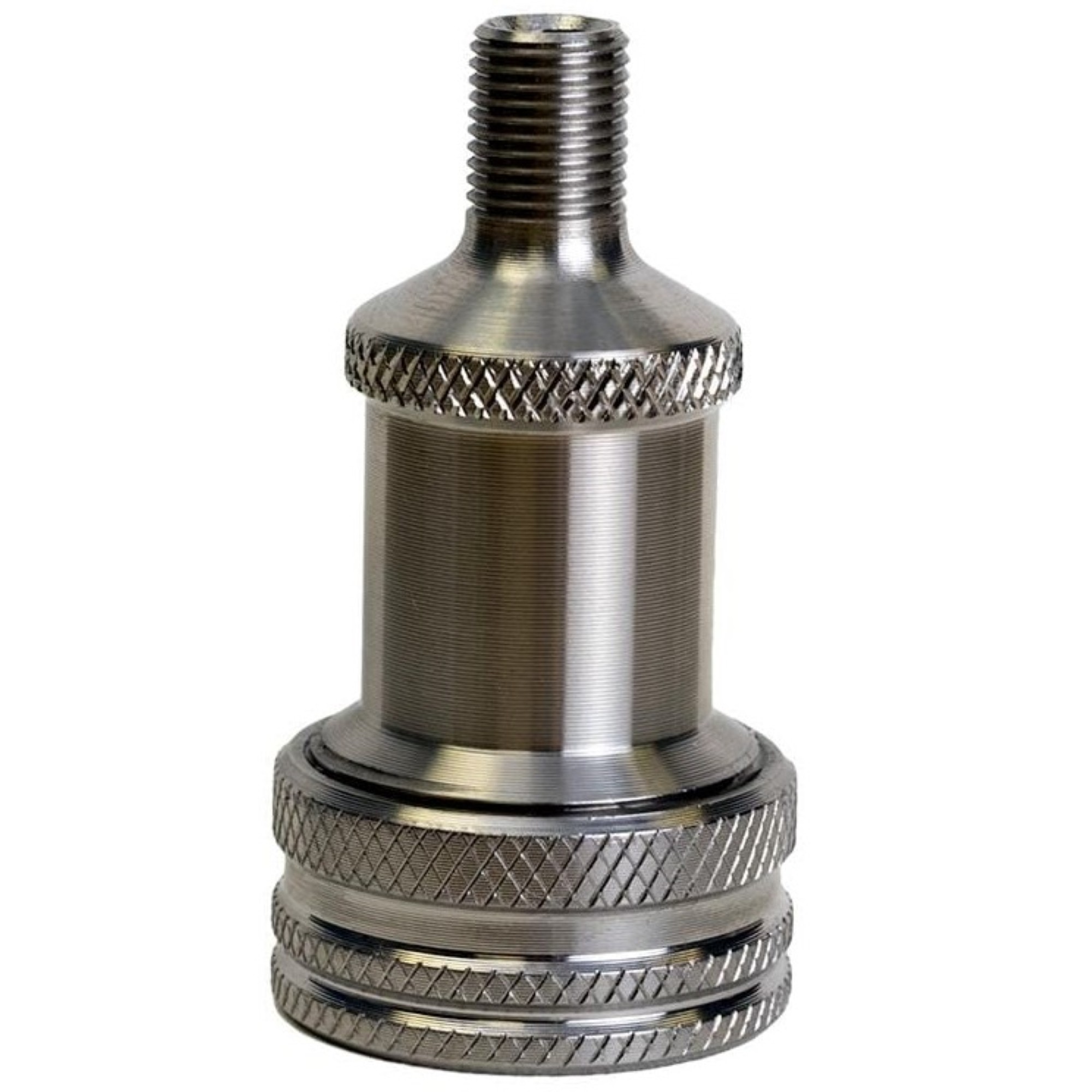 Crafted from aluminium, the Silca Presta Chuck features a new 242 gasket, utilising a high tech and very red, fully synthetic elastomer base material rather than a carbon black filled natural rubber of previous gaskets. This unique bright red gasket borrows from industries which require air-tight seals in the harshest of environments, and tests to a life expectancy of more than 5X the carbon filled rubber or Buna-N materials used previously. New Two-Stage seal geometry seals on both valve stem and at the base of valve core threads resulting in a more positive seal and improved durability. The new gasket slips onto the valve stem with a positive and satisfying 'click', while unique internal geometry actually utilizes line air pressure to compress the gasket onto the valve stem: the higher you pump, the harder it grips the stem!