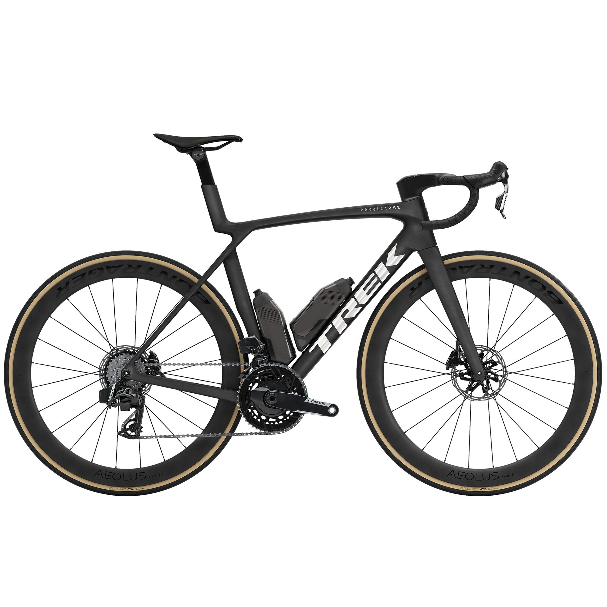 It features a wireless 2x12 SRAM Force AXS E1 electronic groupset with integrated power meter cranks for precise shifting and data-driven training. Bontrager Aeolus Pro 51 carbon wheels offer aero stability, while the Trek Aero RSL one-piece bar and stem and RSL Aero Bottles and Cages further reduce drag, making this bike a complete race-day package.