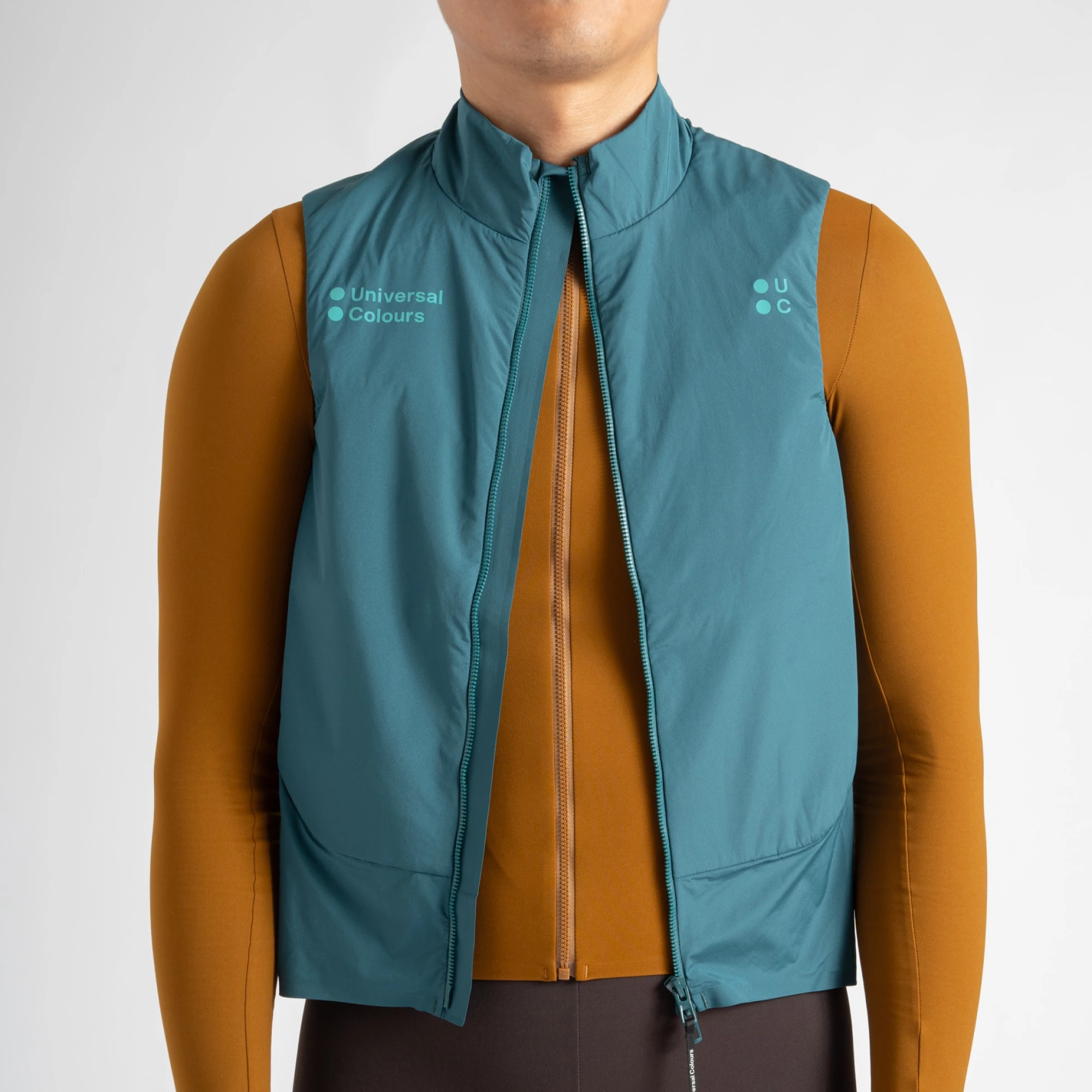 Designed to be used as part of a cold-weather layering system, the Universal Colours Chroma Insulated Unisex Gilet is warm yet breathable, with a DWR C0 treatment to keep light rain at bay. Key to thermoregulation is innovative Comfortemp® phase change lattice insulation, which uses your own body heat, absorbed and stored in the material during hard efforts, to warm you up as you start to cool when soft pedalling or descending. The outer is constructed from a two-way stretch recycled nylon blend to prevent restriction to movement.