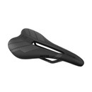 Additionally, it curves from tip to tail to provide "locked in" support for the pelvis when riding in a racing stance for extended periods. The saddle includes a thin layer of padding that balances softness with reinforcement.