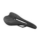 The saddle also curves from tip to tail to offer "locked-in" support for the pelvis when riding in a racing stance for extended periods. It includes a thin layer of padding that balances softness with reinforcement.